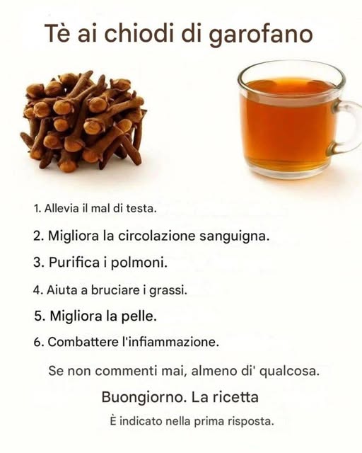 Le voglie quotidiane colpiscono più duramente dopo i 45 anni: le articolazioni sussurrano, il respiro si intrappola in una nebbia nascosta, l’energia tremola come una lampada lampeggiante. Più di un adulto su quattro soffre di infiammazione cronica; la tosse persiste nel 30% degli anziani. Senti una sottile tensione sulle scale o mentre dormi? Si insinua silenziosamente, ma la tisana ai chiodi di garofano può dare una piccola spinta al tuo polso. Ti stai chiedendo come 18 sorsi possano cambiarti la giornata?