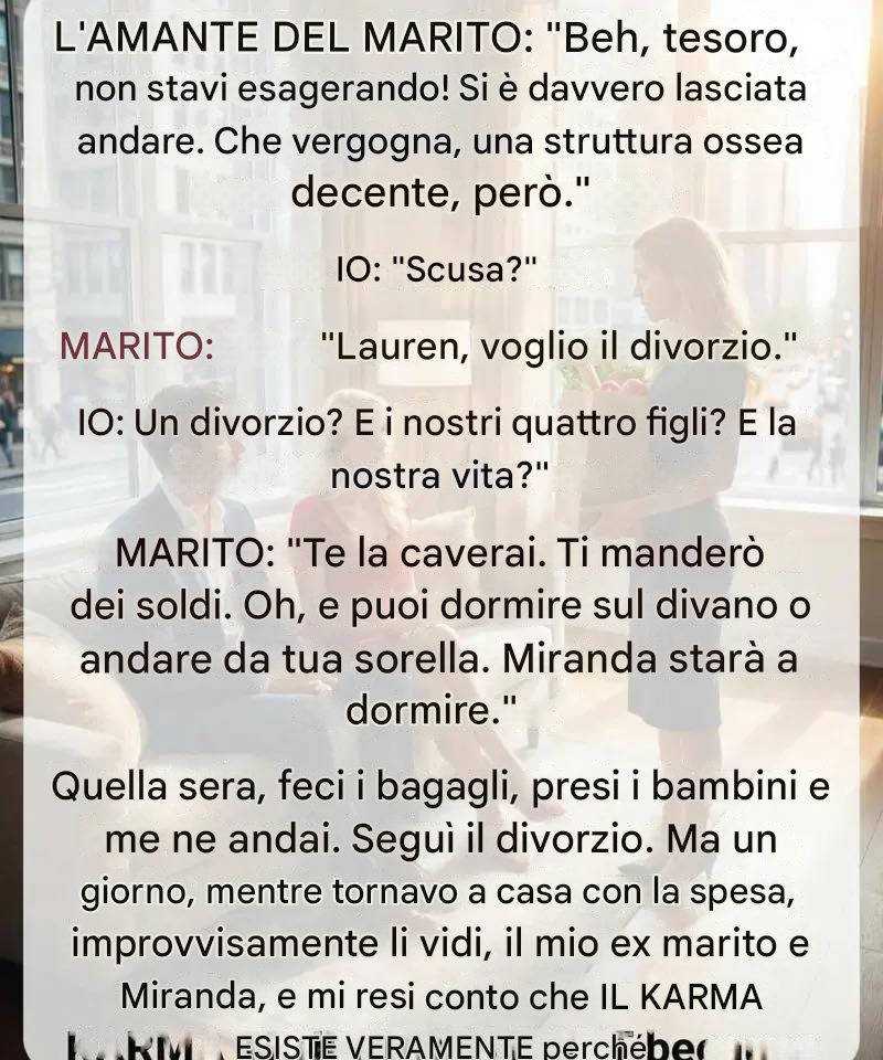 Per me, quel momento arrivò nel mio salotto, quando l'uomo con cui avevo costruito una vita annunciò di voler divorziare. Disse che se ne sarebbe andato e che io "avrei arrangiato in qualche modo" con i nostri quattro figli. Lo shock fu profondo, ma ciò che mi rimase più impresso furono le sue ultime parole: distaccate, sprezzanti e prive di qualsiasi preoccupazione.Quella notte, invece di implorare o litigare, ho fatto le valigie con tutto quello che potevo. Ho radunato i bambini, ho chiuso la porta di una casa che avevo coltivato per più di un decennio e mi sono avventurata verso l'ignoto. Il matrimonio è finito poco dopo, lasciando dietro di sé paura, dolore e confusione, ma anche una quieta chiarezza che si è rafforzata con il tempo.I primi mesi sono stati travolgenti. Ho dovuto destreggiarmi tra lavoro, routine scolastica, guarigione emotiva e responsabilità che non avevo mai portato da sola. La stanchezza è diventata familiare. Eppure, sotto il caos, qualcosa di inaspettato ha iniziato a cambiare. Ho ricominciato a notare me stessa. Ho fatto passeggiate senza fretta, ho organizzato il mio spazio, ho letto libri che mi hanno aperto la mente e ho cucinato pasti nutrienti invece che frettolosi. La donna che era svanita sotto anni di compromessi è lentamente tornata.